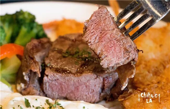 牛排肉质鲜嫩,外皮有一定的酥脆度