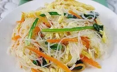 2)粉丝在温水中浸泡半小时,胡萝卜切丝,鸡蛋打散;