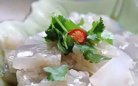1)猪皮洗干净,在沸水中略煮,捞出后,用刀刮去靠近肉那边的油脂,一定要刮干净,否则影响皮冻的成型和口感;