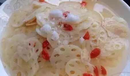 藕切片,找一个沙锅或铝锅烧开水,藕烫大概两分钟左右,捞出,过凉,多加白醋,多加糖,少放点盐,香油,拌均匀。煮藕一定不要用铁锅,否则变黑,一变黑,虽然吃起来没什么变化,食欲就没有了。