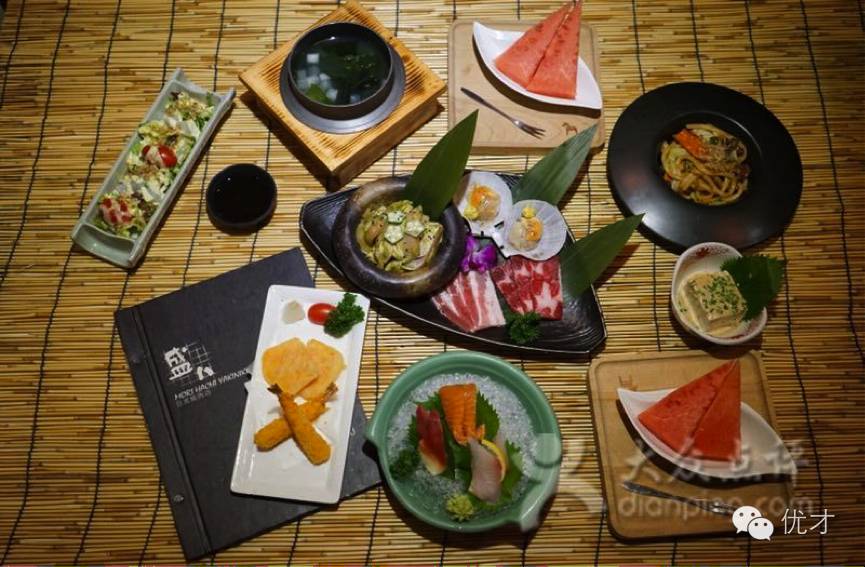 刺身盛合、盛八特式野菜沙律、极上和牛炒乌冬、清酒煮香蒜蚬仔汤、南瓜天妇罗&盛八吉列虾、意大利香草鸡腿肉、岩烧牛胸腹肉&黑豚肉