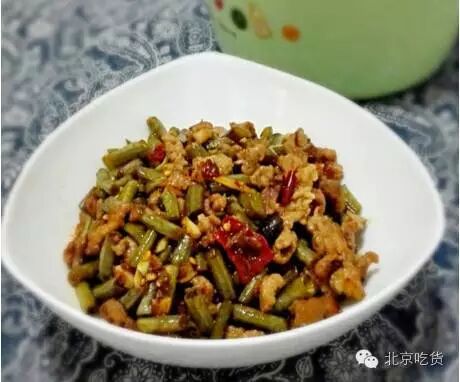 食材:肉末,酸豆角,姜,干辣椒,料酒,生抽,老抽,香油,油,胡椒粉,糖。
