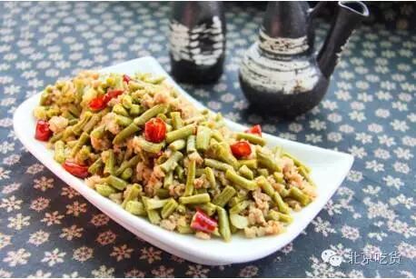 1.酸豆角放在清水中浸泡20分钟洗净,用手攥干后切成小粒。