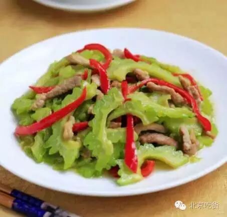1.苦瓜去籽,怕苦买稍微黄一点的,切片泡盐水里,半小时挤去苦水。