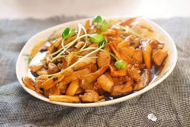 1.猪肉洗净后去皮切薄片,加入料酒、酱油腌制。