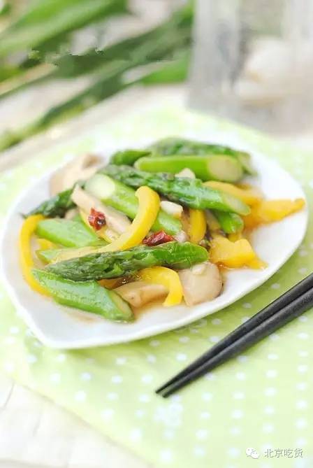 食材:3分肥7分瘦猪肉100克,蒜苔200克,蒜蓉10克,新鲜红椒1个,调味料:豆豉15克(切碎),盐1/2小匙(炒蒜苔),生抽1大匙(炒肉),砂糖1/4小匙,鸡精1/4小匙。