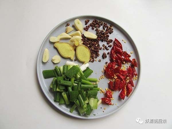 调料准备:花椒、姜、蒜、葱、酱油、红油