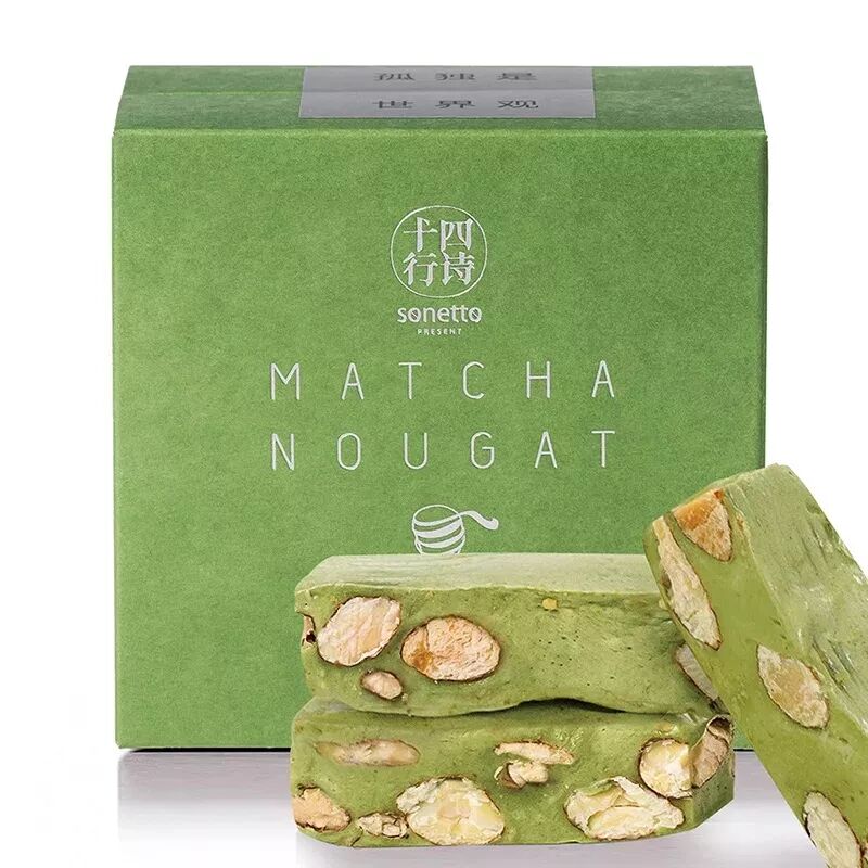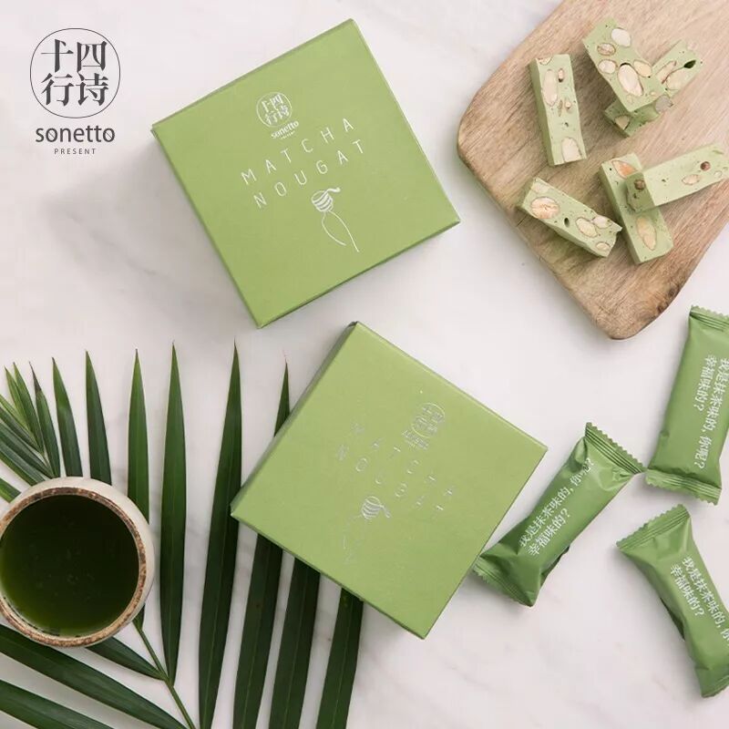 十四行诗的这款抹茶牛轧糖很棒,口味已经超过价格了。而且他们的包装非常小清新,每颗糖上面还有表白的文案,和糖一样甜了!(可惜我吃完了,没有拍照)