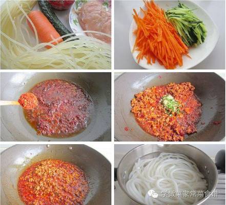 新疆的炒米粉还有就是必须加足够的植物油,用豆瓣酱和辣皮子末或者粗辣椒粉翻炒出来,不像别的地方的炒米粉那样的清淡,这样看着红红的、油光闪亮的、辣的攒劲才过瘾。所以好多地方的炒米粉和新疆的炒米粉区别就很大了。吃过炸酱面就没吃过炸酱米粉,爱吃米粉的我,就创意了这款炸酱米粉,味道不是一般的好吃,喜欢吃米粉的一定得试试这个味道,简单好做有炸酱面的影子,更有炒米粉的香辣味道。