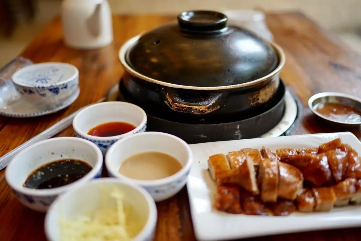 财鱼片被切到很薄,几乎透明了。在浓汤里汆汤十秒钟就熟了,这鱼肉才叫嫩,中间还有点嚼劲的地方,口感很特别。一定要蘸上特制的酱料吃。