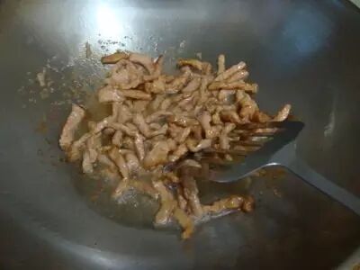 2步骤2起油锅先炒肉丝7分熟盛起备用