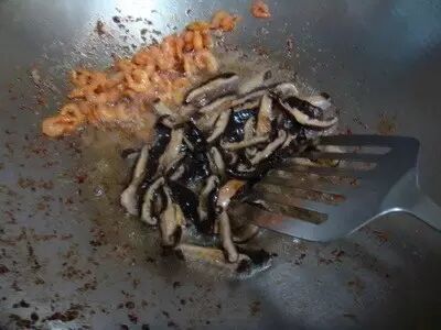 3步骤3余油爆香虾米.香菇要等香味出来时才能放下一样爆香料