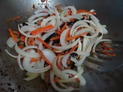 4步骤4依序放入红萝卜.洋葱都要炒出香味喔