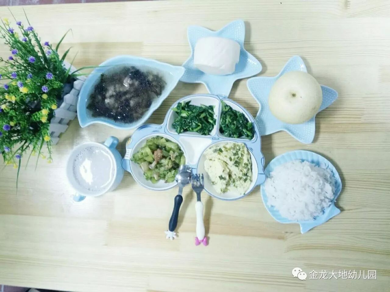 午餐:白米饭(炒青菜,肉末炖蛋,青瓜炒肉)紫菜肉丝汤