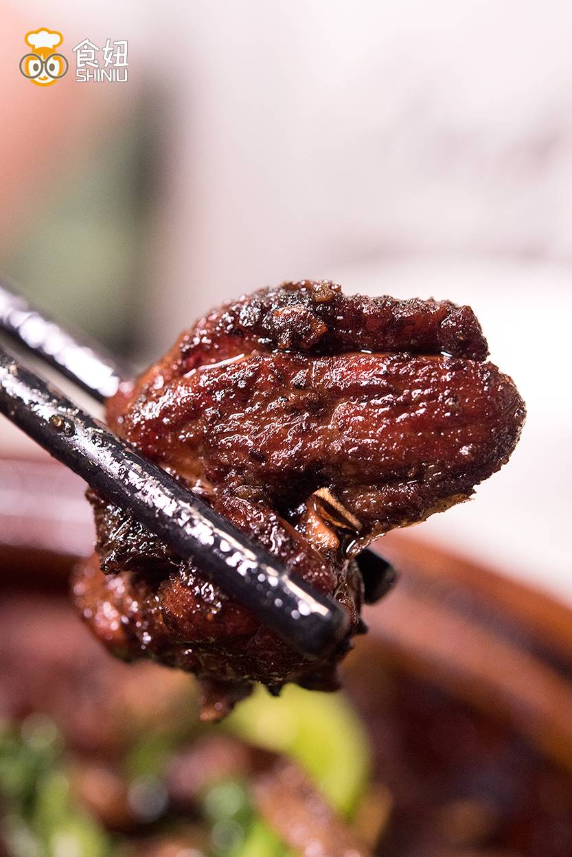 鸭肉经过爆炒调味后肉质比较厚实,又得益于“炆”,相当的入味,同时也不会太过火。
