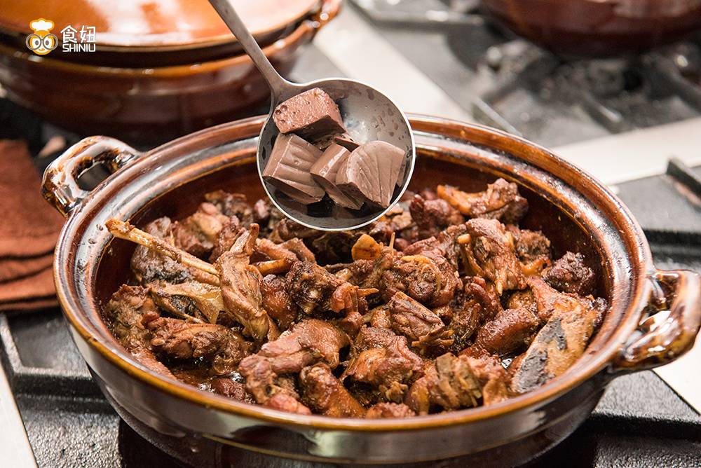 炆煮的时候还会加上一点鸭血,让这一锅炆鸭味道更多层次~