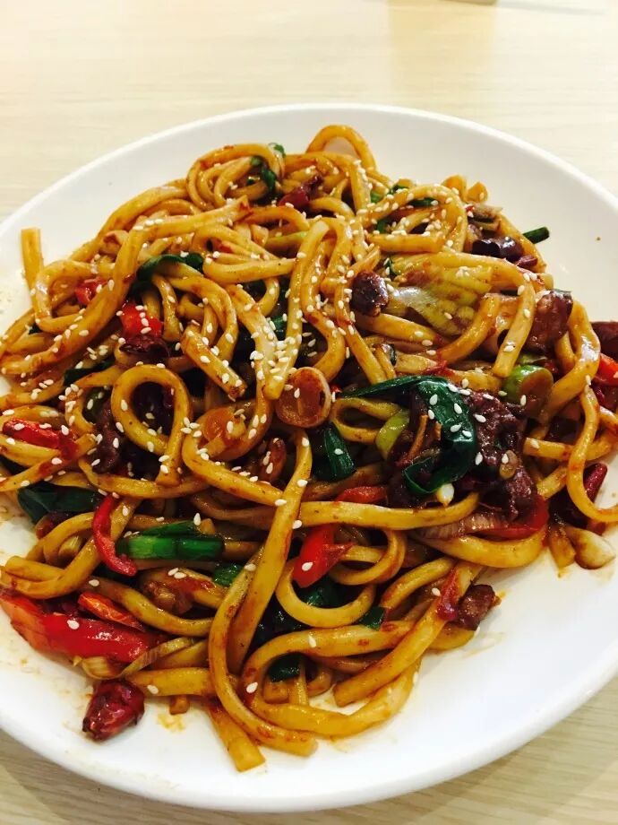 玛琳纳家的丁丁炒面十分筋道,搭配辣子羊肉炒的爆香,给的量非常实惠哦,食量小的女生可以两人要一份。