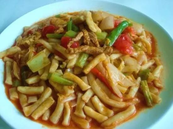 碧西巴格家的炒面很独特,与其他家不同,不同的是在炒的时候加入了花生豆,虽然是整粒加进去但是一点也不影响香味的挥发,嚼起来香香的,肉肉也很多,快来试试吧。
