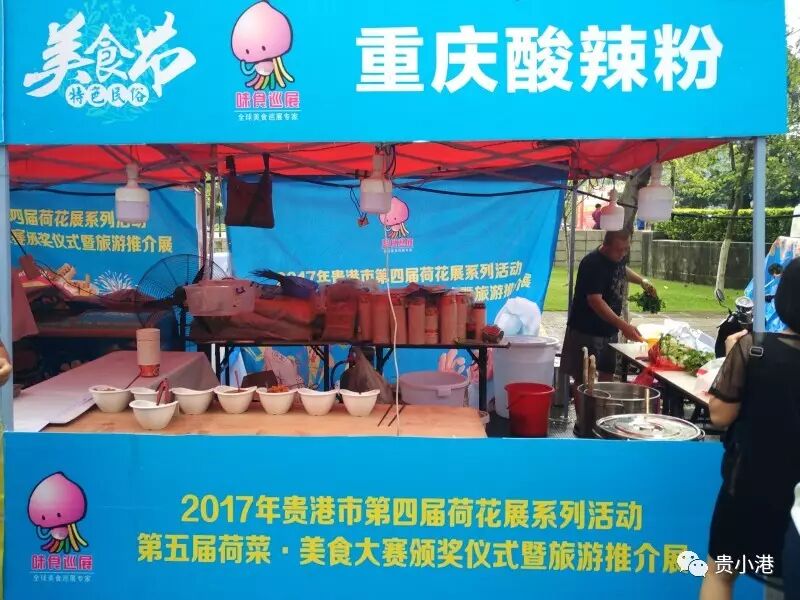在广场上除了荷花飘香,还弥漫着来自美食的香味