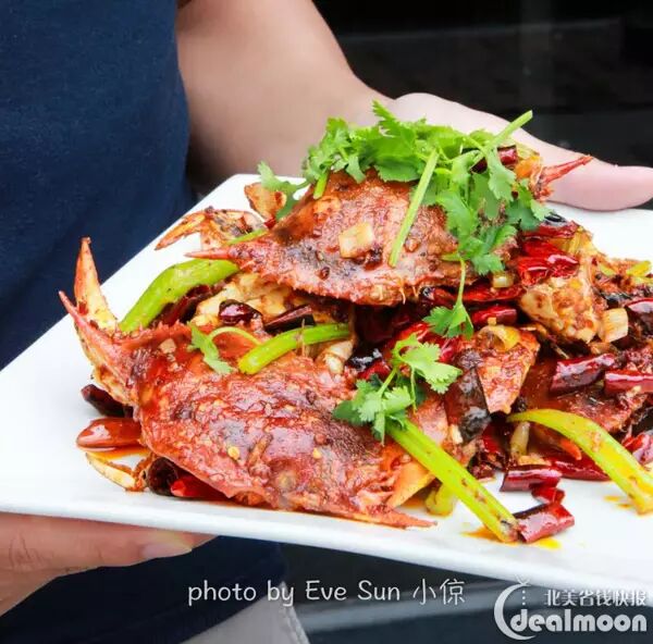 香辣蟹!先用油炸过之后再爆炒,蟹壳可以嚼碎了直接吃~