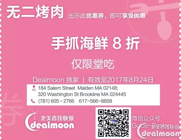 从一辆红色小餐车开始,无二烤肉填补了波士顿中国烧烤的空白。现在店里不但可以吃到30种以上地道的烧烤,还有烤鱼、香辣蟹、剁椒牛蛙和麻辣香锅等美食,除此之外还有老北京炸酱面和地道的凉皮!不管你是老顾客还是刚来波士顿的小伙伴,这里一定会让你吃到家的味道,童年的回忆。