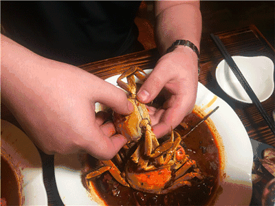迅速拎起一个螃蟹迅速开吃,掰开之后满满的黄,拿在手里沉甸甸,扎扎实实的,是那种醇香的体验,吃的根本停不下来,那叫一个鲜香,憋住,别流口水……