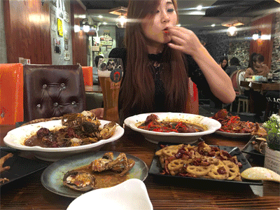 海鲜大咖里散发出浓浓的蟹香味,夹杂着种种香味。拿起一个螃蟹吃到嘴里,蟹黄的浓香及鲜甜瞬间就到喉咙。蟹肉裸露在外,吸收了蟹黄的汤汁,令蟹的鲜香更加出色!