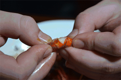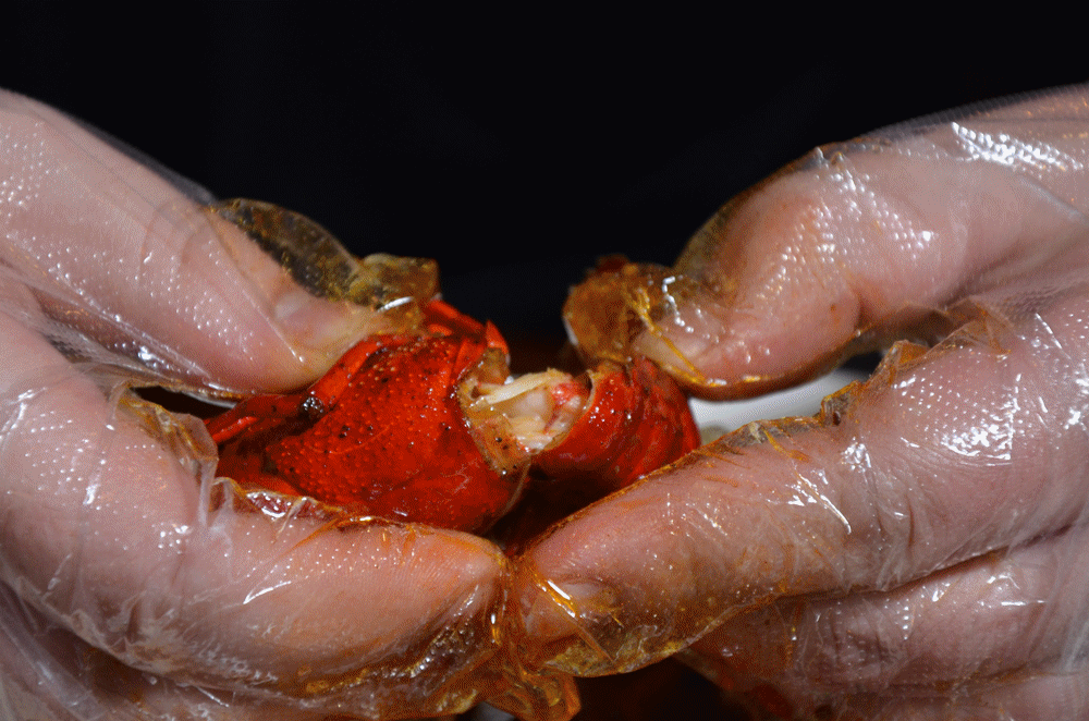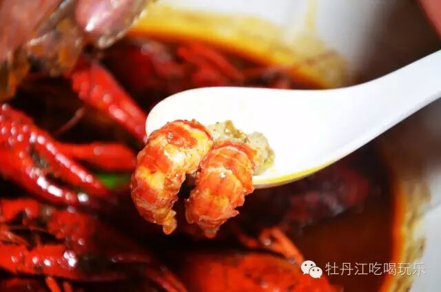 吃小龙虾一定要先吸上一口酱汁,再吃头膏!最后才能吃肉,那秘制的十三香味好吃到没sei了。”