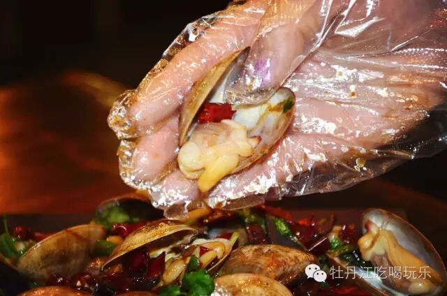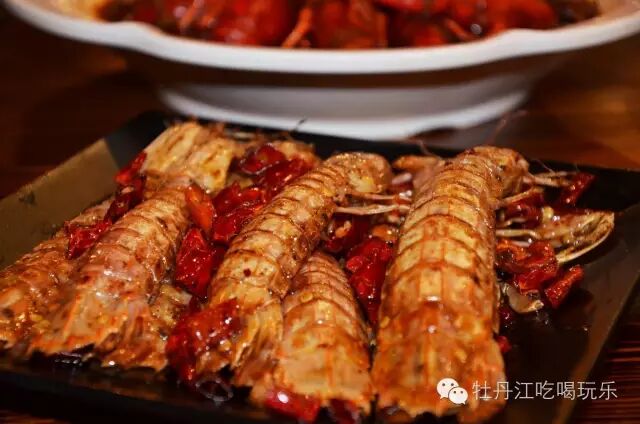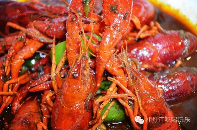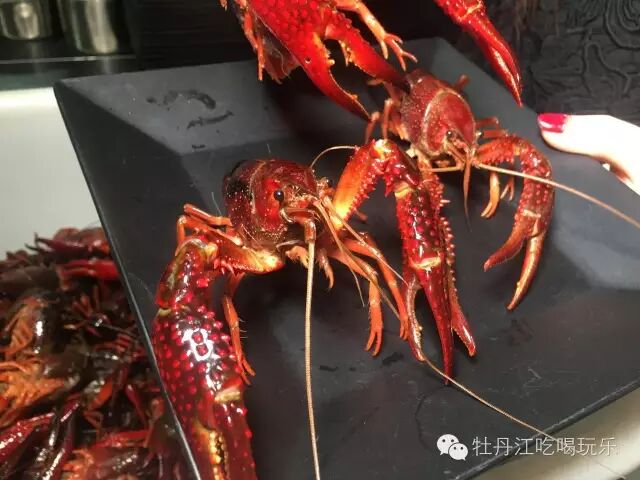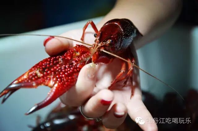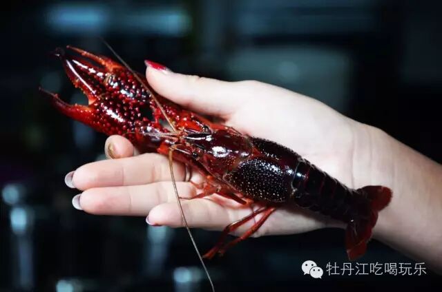 在咱家吃小龙虾不用担心不新鲜,是货真价实,你看它拿起一个就指着对我说:“呐,美女与野兽!”