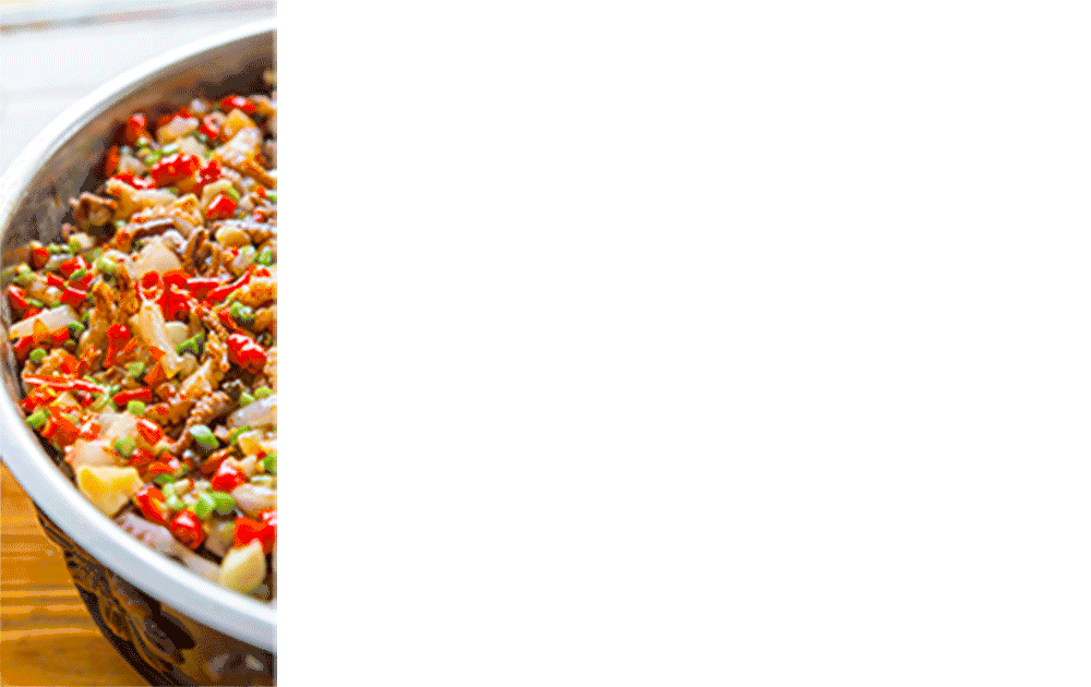 内圈颜色鲜艳、搭配丰富的炒什锦,