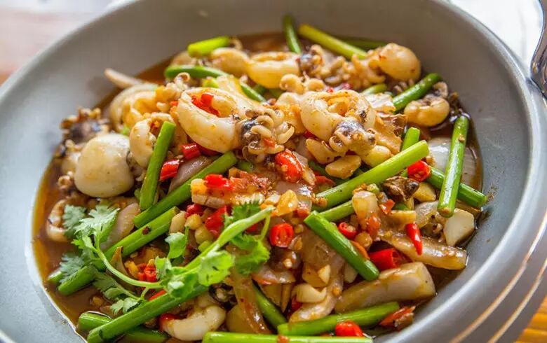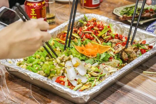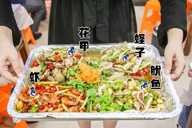 香辣虾、泡椒炒鱿鱼、绝味花甲、爆炒蛏子,