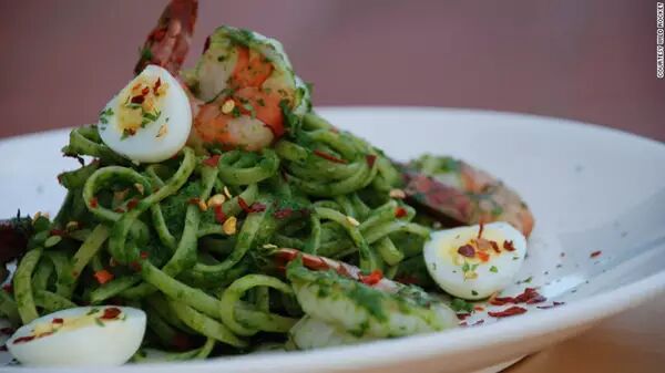 比如叻沙——最流行的娘惹菜式,Low把原来的辣椰奶味的汤汁改造成香蒜酱,来搭配意大利面。