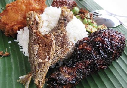 椰浆饭,可以搭配香酥凤尾鱼、糊辣鱼、煎蛋,就着甜辣酱或者咖喱,实在大快朵颐。
