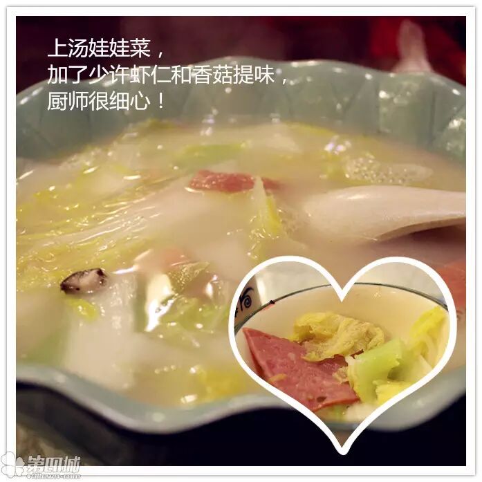 厨师很细心的加了香菇和虾仁提味,还有培根和火腿肠,整个汤的颜色也搭配很好。