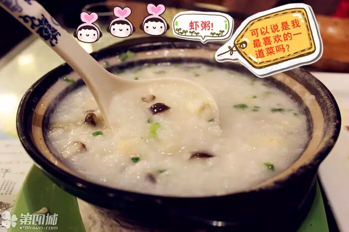 其实很多时候你用心做一道菜是很容易被顾客发现的,比如这道虾粥,说实话成都很多喝粥的馆子,这个厨师完全抓住了粥的本质,一定要用香油泡过米来熬粥,又软又香,香菇点缀,不抢虾粥的本味又有了亮点。真心好喝,大大赞!