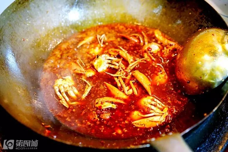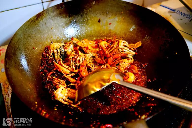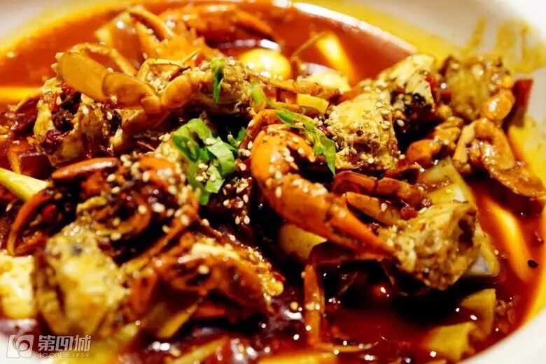 铁蟹肉多紧实,比河蟹细嫩,比海蟹味鲜,是生长在淡水与海水相交的品种蟹。除了招牌香辣蟹,还有泡椒蟹,姜葱蟹可根据个人喜好选点。