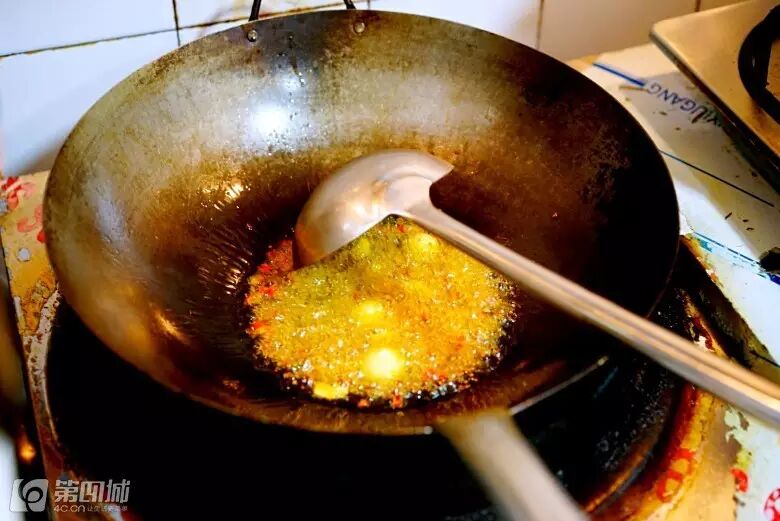 是时候下锅炒蟹了,这个时候本来我该默默离开。但我看老板完全没有撵我走的意思,于是厚着脸皮在一旁趁机偷师学艺。看看老板如何制作这香辣蟹。