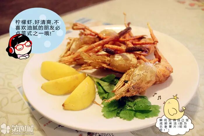 吃了那么多香辣的,点一份柠檬虾试一试,虽然和泰国那种做法不同,但是味道有异曲同工之妙哦,而且更好吃的是这个更椒盐,配点柠檬,要是在海边就更棒啦!