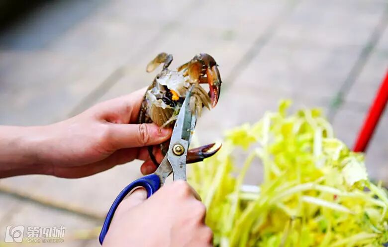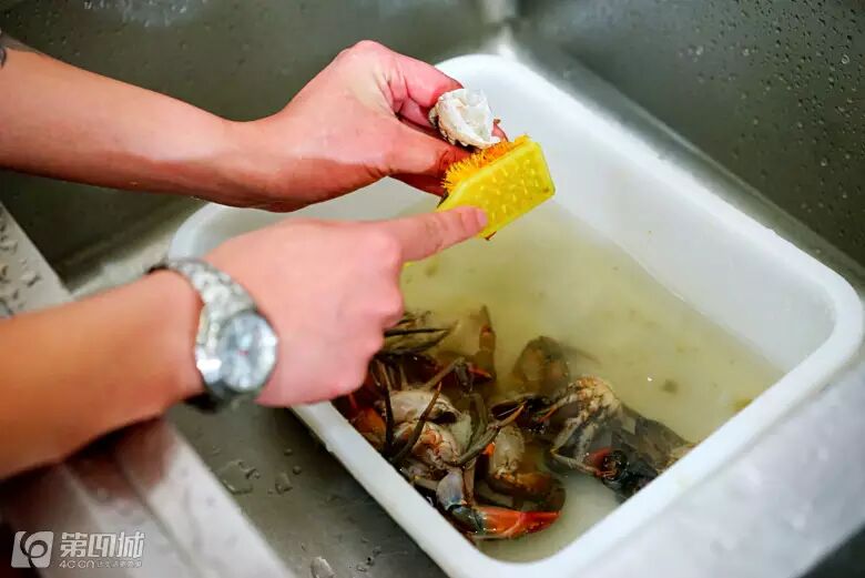 别的地方吃蟹都是一只蟹一分为四,他家一看就是耿直老板,业界良心,直接剪刀卡擦剪成两半。蟹要用专门洗蟹的小刷子反复耐心刷洗几遍方能下锅。