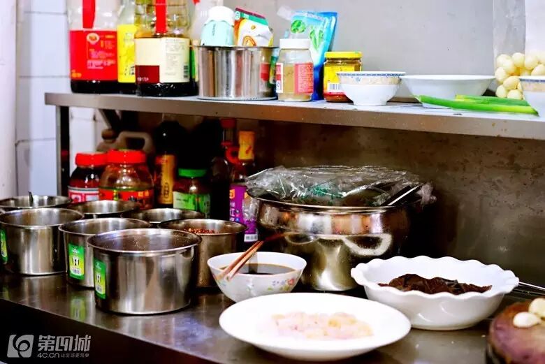 厨房是半开放式,从外面就可以看见里面的操作过程。看得出来这是一家小家庭式的厨房,不专业的摆台收拾的干净整洁,一尘不染,充满了家的温馨。