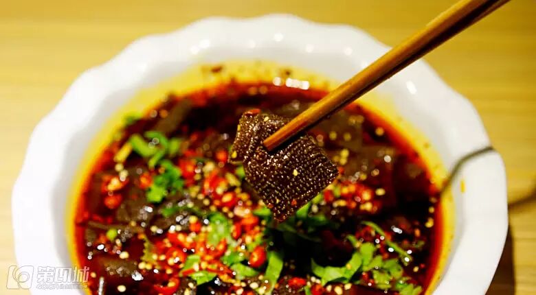 红油毛肚,经典川菜。煮熟到刚刚断生放凉的牛百叶相当爽脆,淋上四川独有的红油辣椒,花椒油,再撒上葱花,香菜,小米辣,酸辣开胃,回味无穷。
