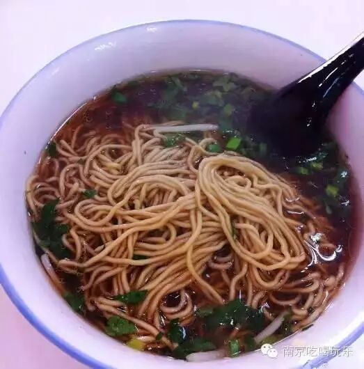 南京城的面条少则10元起,他家肉丝面仅仅8元。面条用的是“跳面”,面条有毛孔易入味,吃在嘴里耐嚼,底料是秘制镇江酱油汁,非常鲜美,吃过难忘。