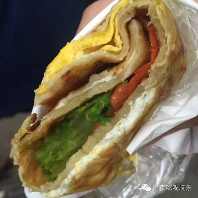 绝对的人间美味呀,其他家鸡蛋都是盖在面饼上,酱也没她家好吃,她家是正儿八经的灌到面饼里。整个蛋饼非常嫩,没有加辣,甜酱也恰到好处。