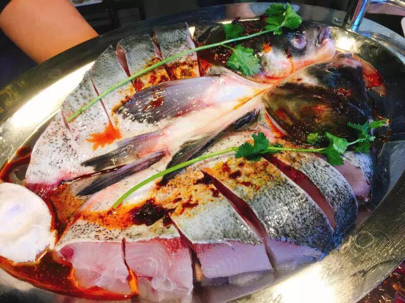 鱼头用的是三斤左右的野生花鲢头,活鱼现杀,先放在秘制的腌制粉去腥,保鲜嫩,保证每条鱼入锅能动,鲜活看得见。